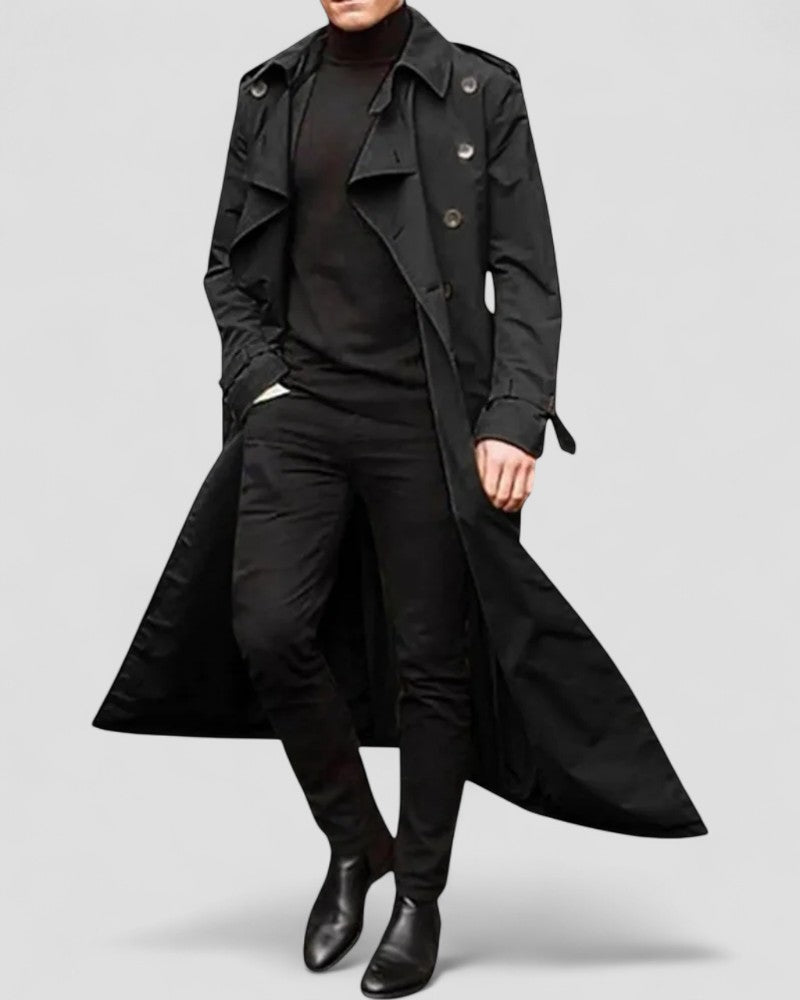 This Men's Waterproof Long Double Breasted Trench Coat combines classic elegance with modern functionality, making it a must-have for any stylish man's wardrobe. Designed for effortless transitions from casual city strolls to sophisticated evening outings, this coat offers a perfect blend of structure and comfort. The double-breasted cut enhances its sharp silhouette, while the flowing design adds a touch of understated drama. Ideal for layering, it ensures you look polished without compromising on practicality.