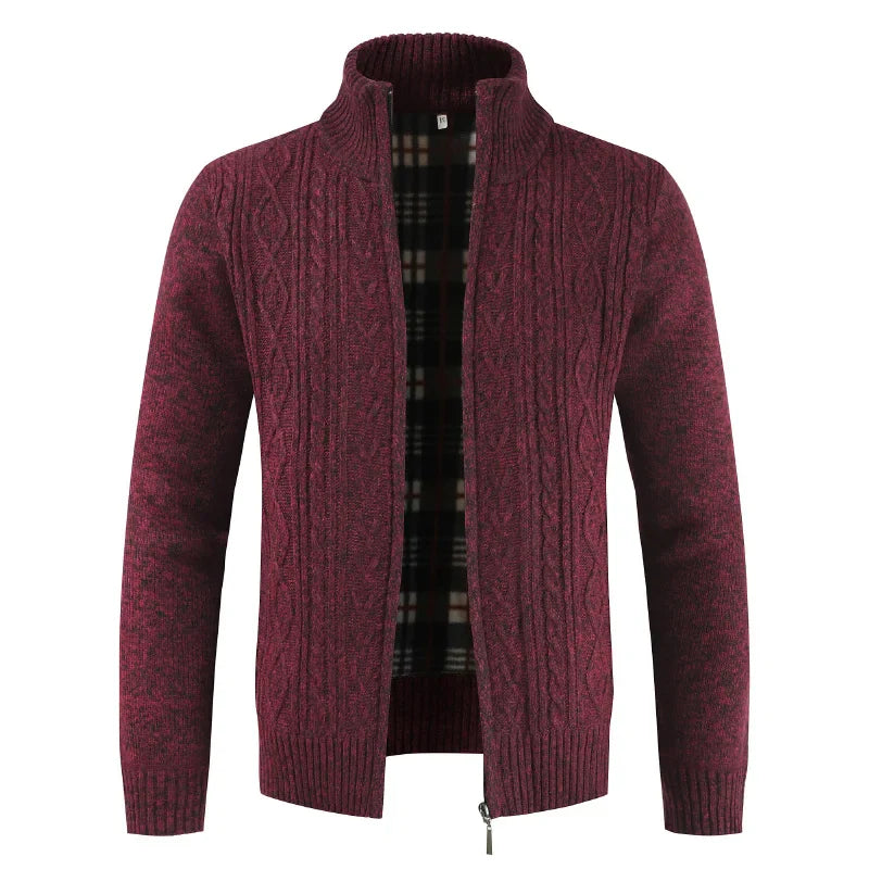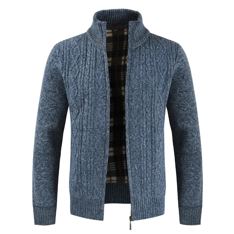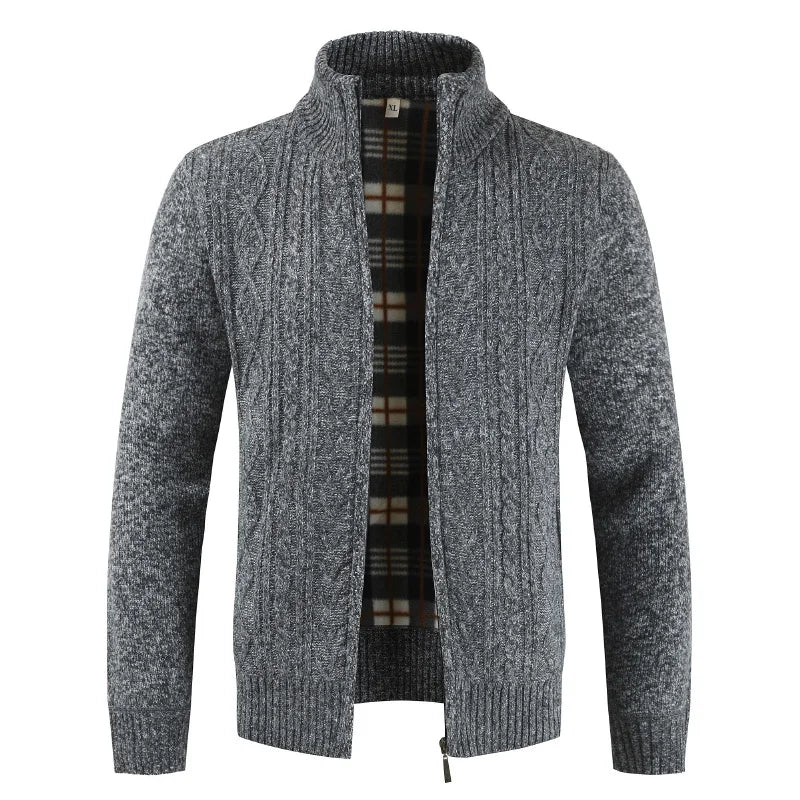 This men's zippered cable knit cardigan seamlessly blends classic design with modern practicality. Perfect for casual outings and outdoor adventures, it ensures you stay warm while looking effortlessly stylish. Crafted from high-quality polyester, this cardigan is designed for comfort and versatility, making it an essential layering piece for the fall and winter seasons. Whether you're heading out for a casual day or enjoying a brisk outdoor activity, this cardigan is your go-to choice for maintaining warmth without compromising on style.