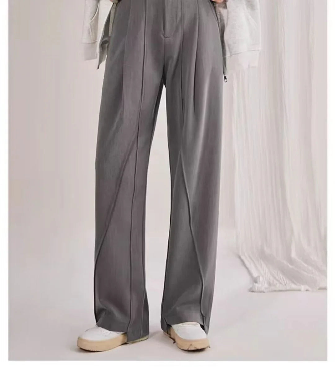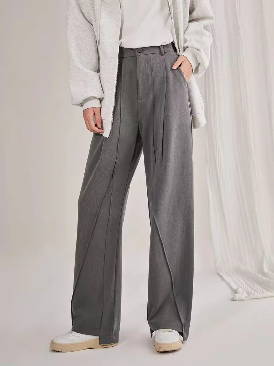 These expertly tailored trousers feature a flattering high waist and a straight leg silhouette, making them a perfect choice for any occasion. Crafted from a soft drape fabric blend, they offer a breathable feel that ensures all-day comfort. The polished design includes practical side pockets and elegant pleats, allowing you to effortlessly transition from business meetings to casual outings. Pair them with a fitted blouse and heels for a sophisticated look or opt for a relaxed vibe with a tucked-in tee and sneakers.