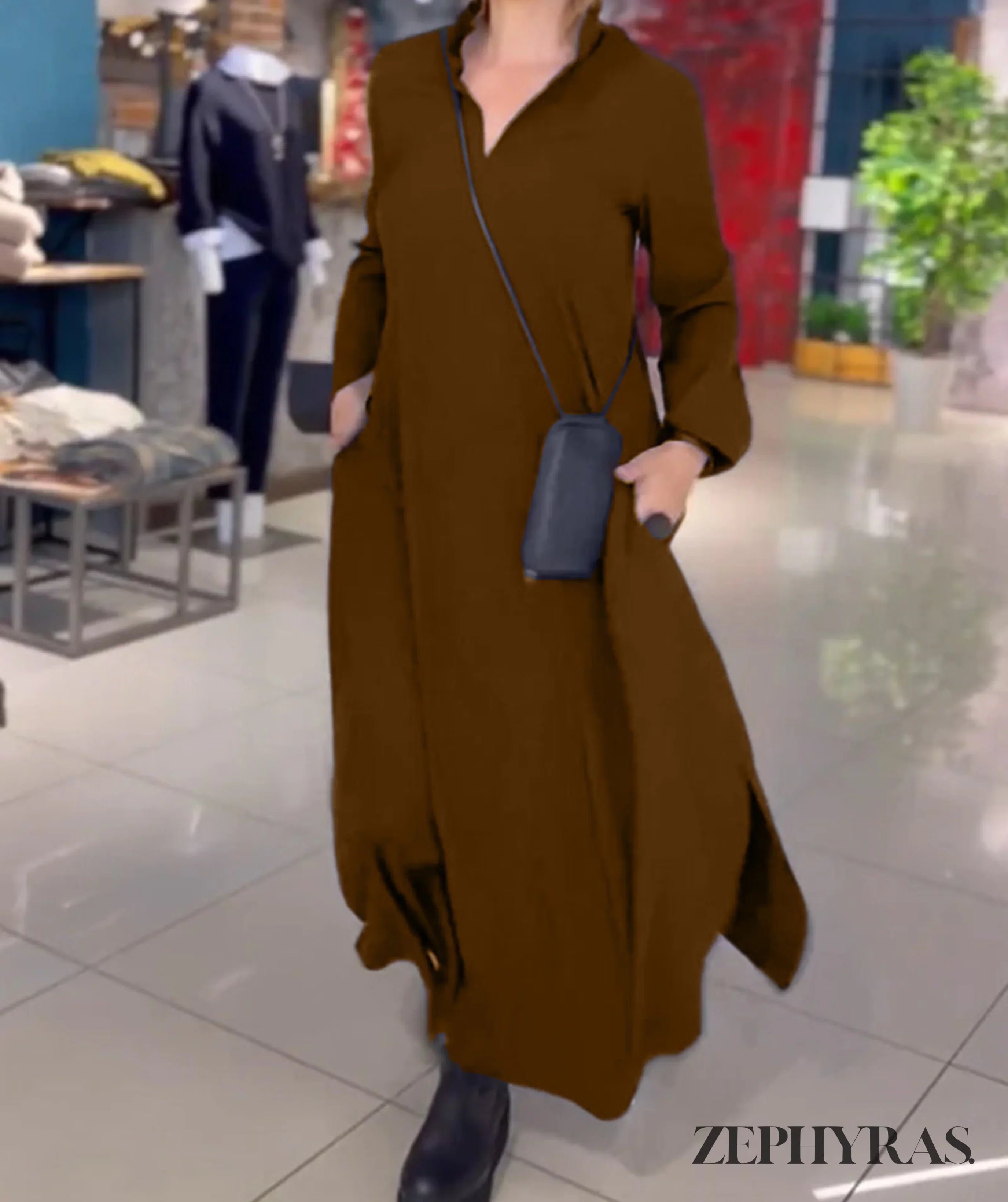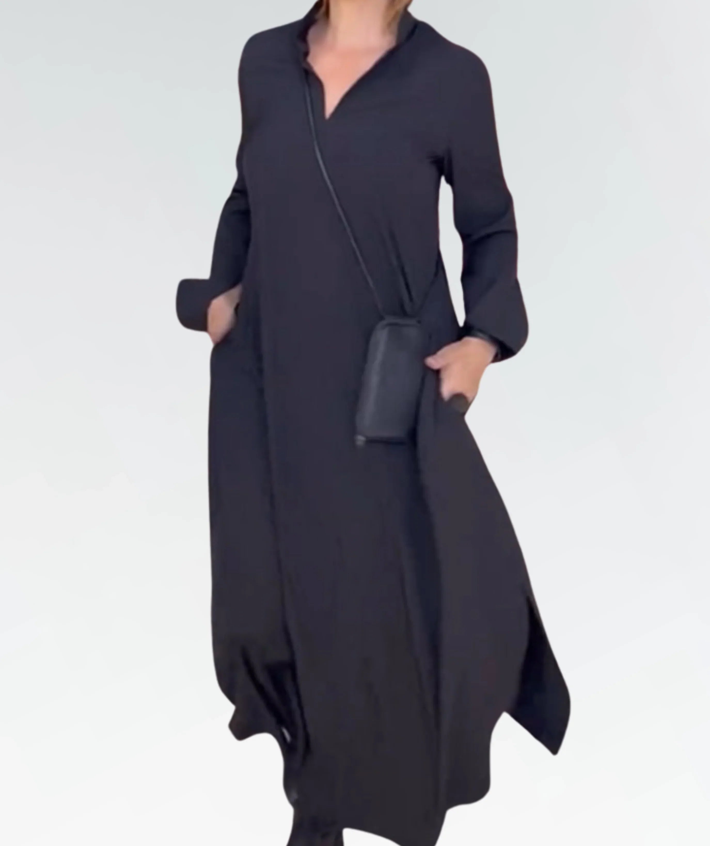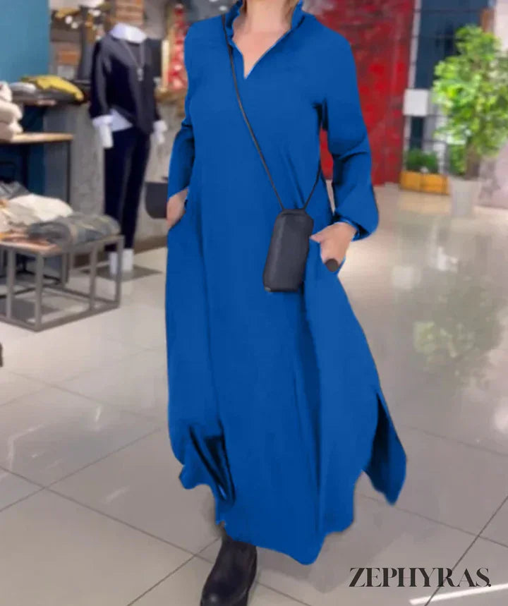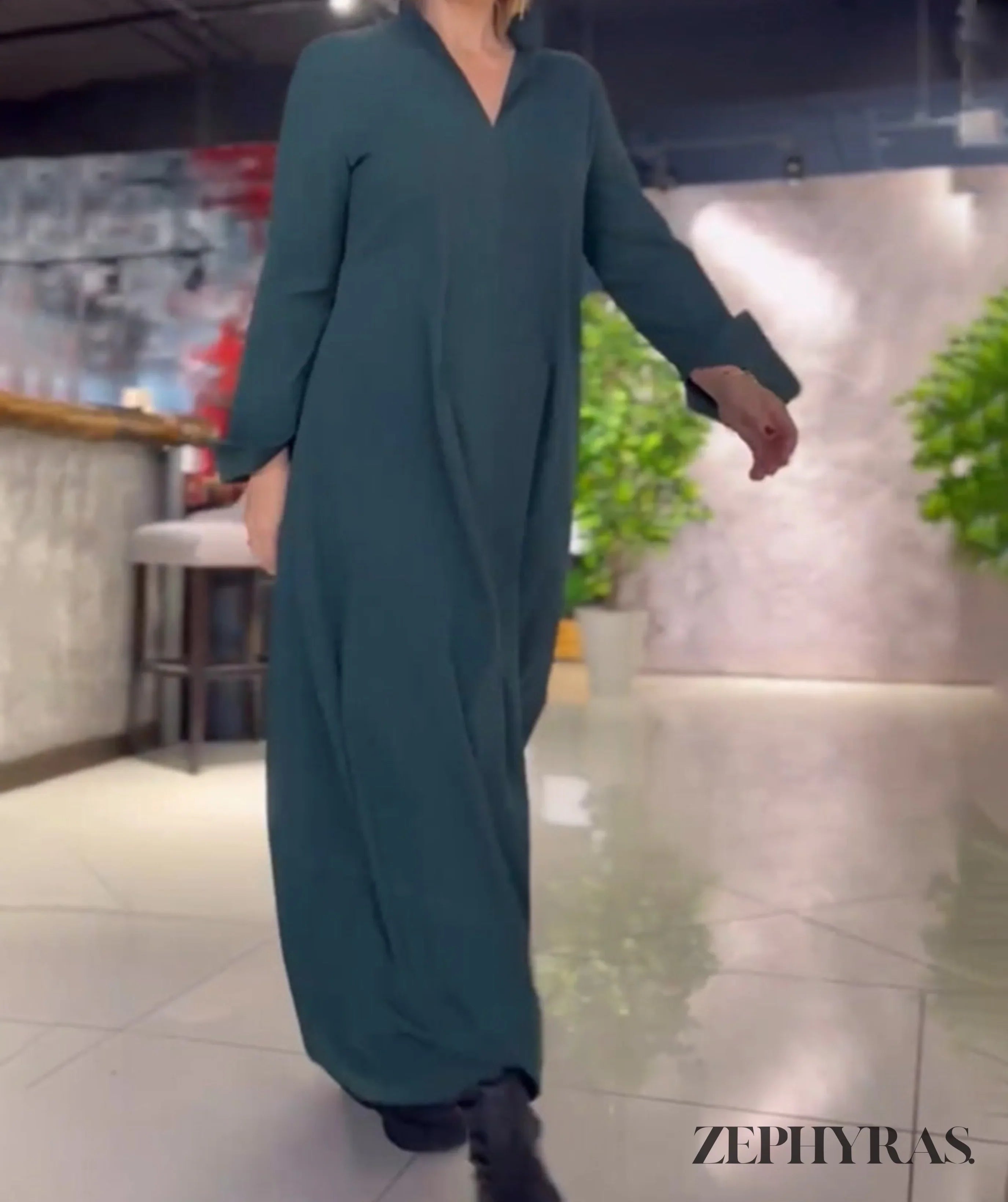 Design: Flowy, maxi-length dress with a flattering V-neckline