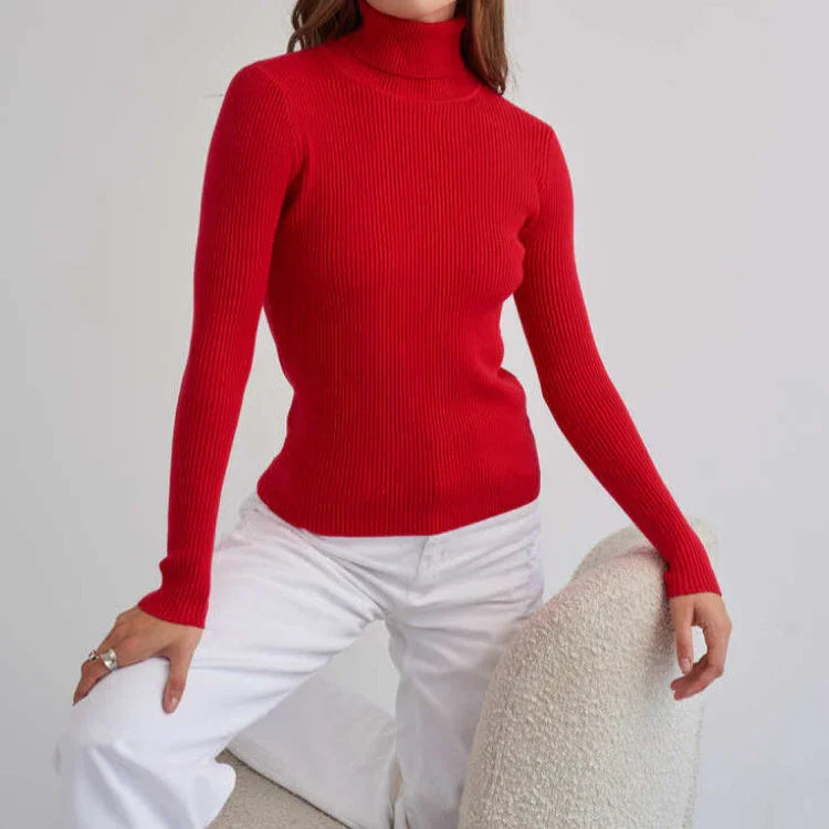 Elevate your wardrobe with this Women's Turtleneck Ribbed Knit Sweater, where cozy comfort meets chic style.