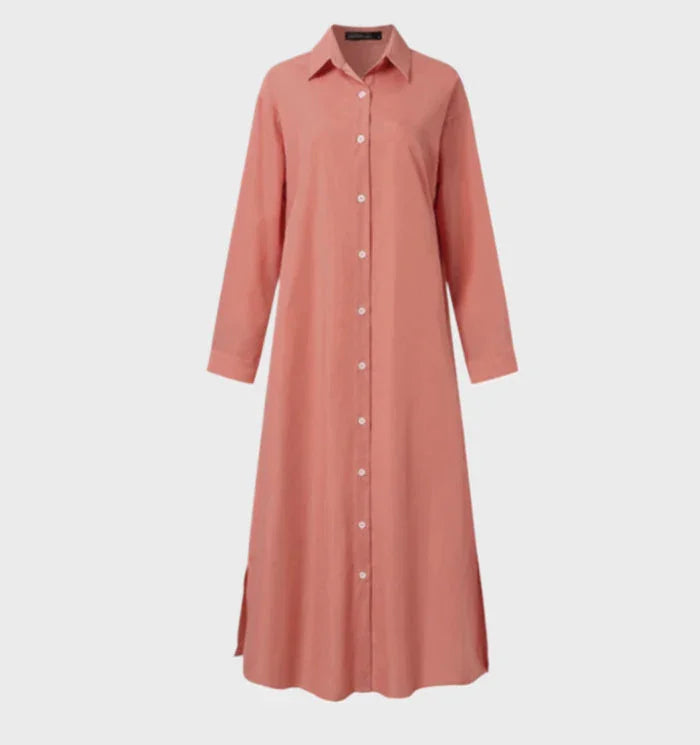 Effortless Chic: Featuring a classic V-neck and flowy cut, this dress radiates understated elegance.